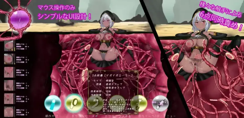 今回は、触手を使って女の子のエロい事をするクリッカーエロゲー。