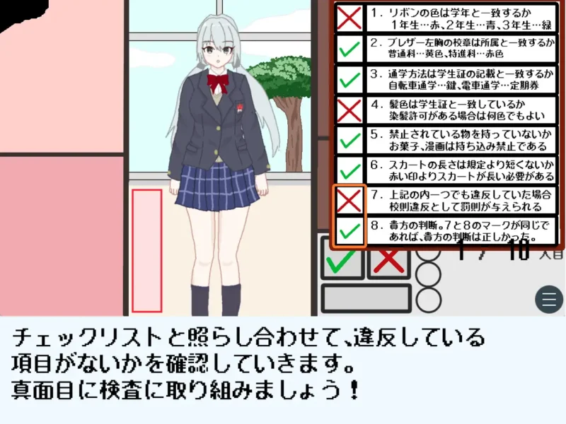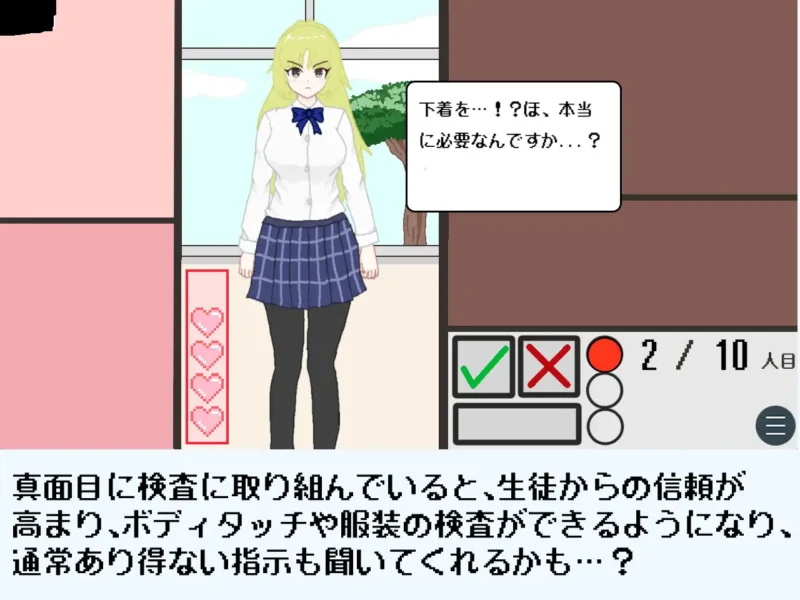 今回は、風紀委員となり、女子生徒の拘束違反をチェックするエロゲー。